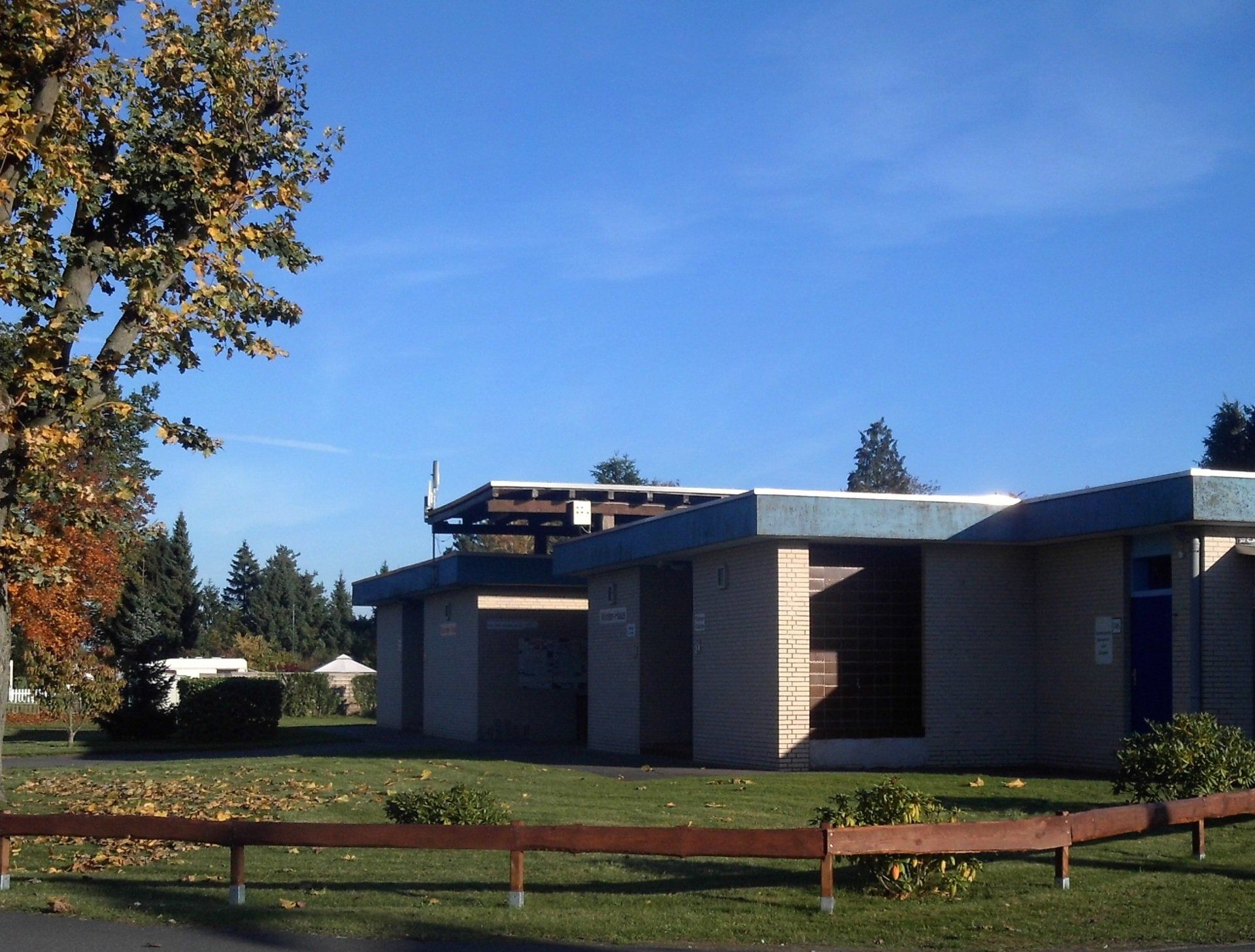 Zwei Sanitärgebäude sind barrierefrei zu erreichen. In einem der Gebäude befindet sich zusätzlich der Spülraum, ein Waschmaschinen- und Trocknerraum sowie der Entsorgungsbereich für die Chemietoiletten.